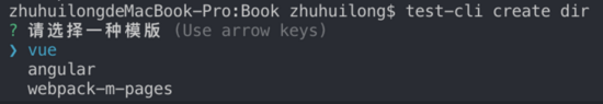 命令为:test-cli create <dir>