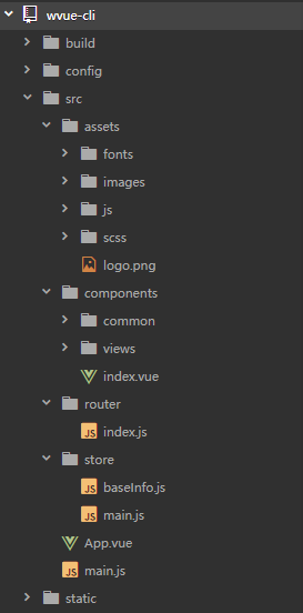 至此,一个基本完备的vue项目“脚手架”就完成了,以后每次初始化项目都可以按照这套方案来进行,省去了很多协作开发的交流环节,形成了能够满足大多数项目的目录及文件构成形式,将此项目托管至私服每次初始化项目只需拉取这个“脚手架”便能省区不少初始化项目的时间,岂不美哉!