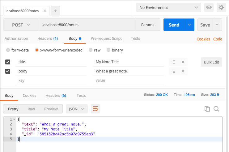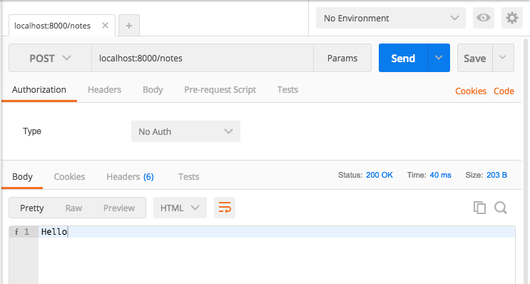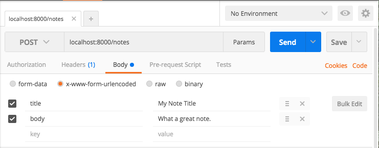 你可以使用 Postman 将 POST 请求发送到 localhost:8000/notes 来测试。