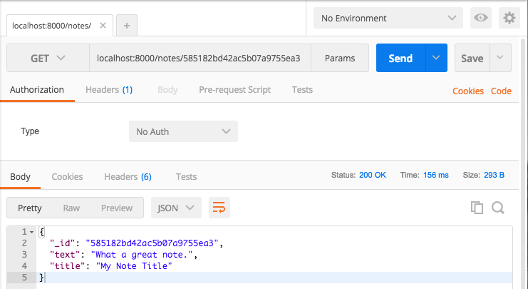 假设你希望通过导航到 localhost:8000/notes/{id} 来获取刚创建的笔记。这是链接应该是localhost:8000/notes/585182bd42ac5b07a9755ea3。(如果你没有得到其中笔记的 ID,可以通过检查 mLab 或创建一个新的笔记)。
