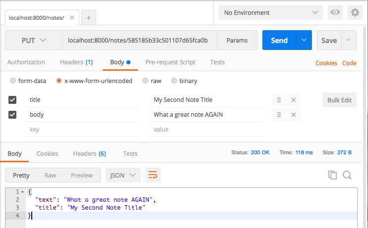 请注意这些代码还不完美 —— 比如你没有提供正文或标题,PUT 请求将会使数据库中的笔记上的那些字段无效。