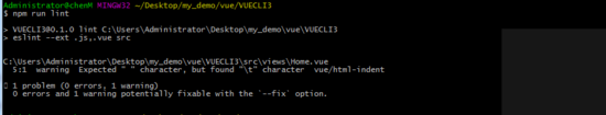 "lint": "eslint --ext .js,.vue src" 批量检测代码