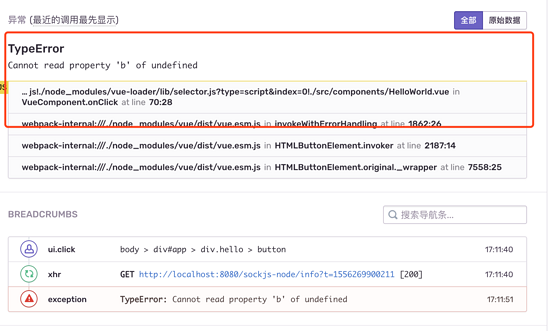 这时我们重新触发一次错误,就可以看到具体的出错位置了。