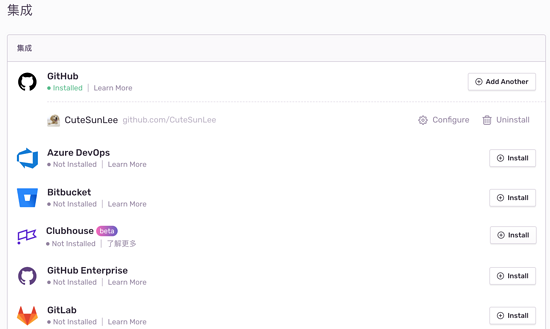 在设置->集成里面可以设置 sentry 关联各种服务,如 github、jira 等。关联上 github 后,可以直接为该异常创建issue。