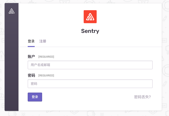 如果过程一切正常的话,现在访问localhost:9000就能看到sentry的登录页面了,用刚才生成的管理员账号密码登录即可。