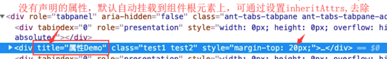 上个例中,title属性没有在子组件中props中声明,就会默认挂在子组件的根元素上,如下图所示: