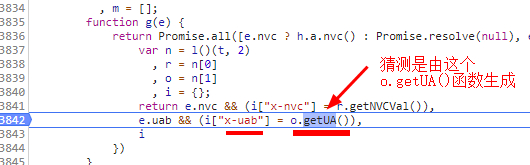 果然是,证明猜测没错,就是这个o.getUA()函数负责生成请求头中的x-uab参数。