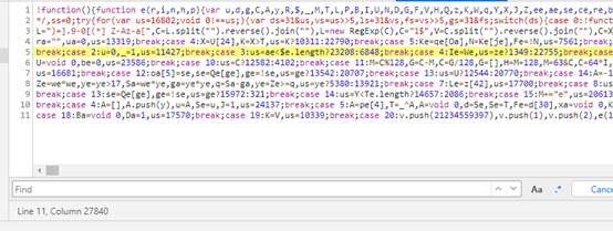 (1)使用chrome断点调试时,js脚本都是压缩混淆之后的,通过chrome的pretty print功能(也就是说那对花括号)可以格式美化,但是,有的时候却会失败,就像下图,格式化后,还是一团糟: