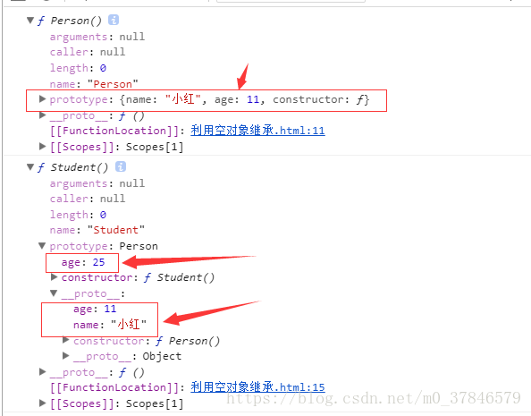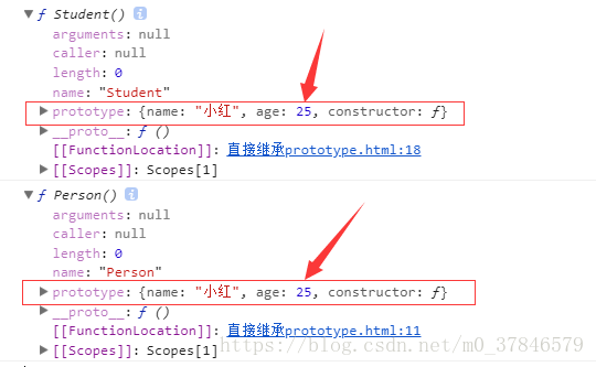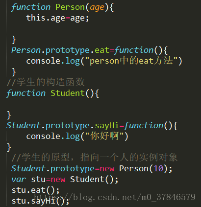 利用prototype,将Student 的prototype 指向 Person 来达到继承效果,