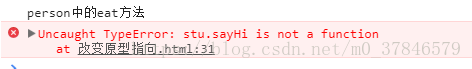 接着实例化一个Student,接着分别在stu 实例上 尝试着调用 eat方法 和 sayHi 方法,