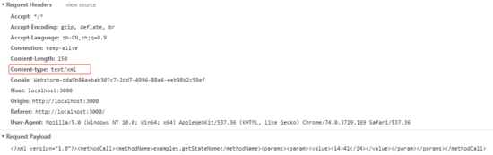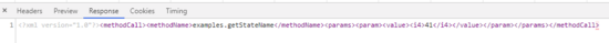 var text = '<?xml version="1.0"?><methodCall><methodName>examples.getStateName</methodName>' + '<params><param><value><i4>41</i4></value></param></params></methodCall>';