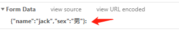 3、 contentType 设置为 application/x-www-form-urlencoded 时,传给后端的请求参数为 JSON 字符串, chrome 调试框查看发送的请求参数多了冒号,如下所示: