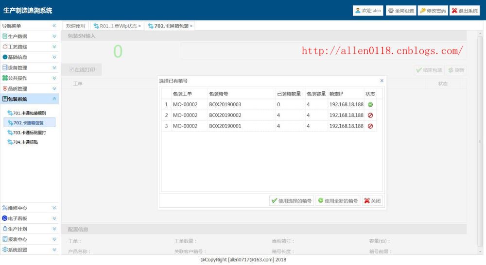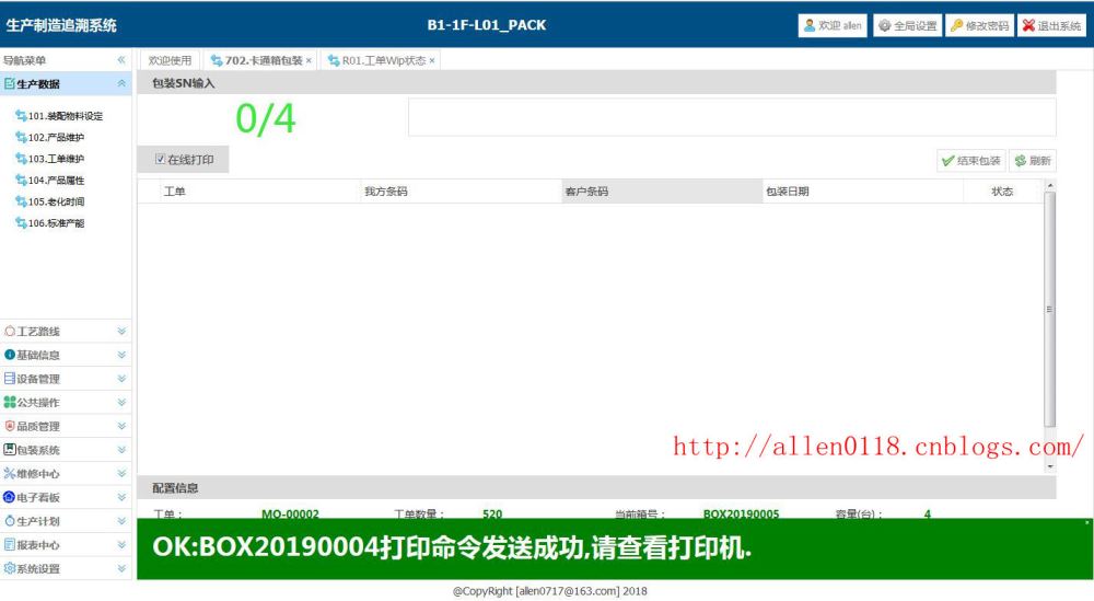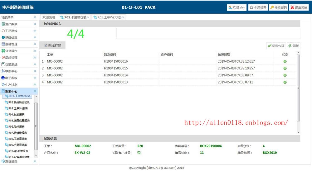 下面开始扫描条码进行包装,该产品的包装容量为每一个卡通箱需要包装 4 个彩盒。