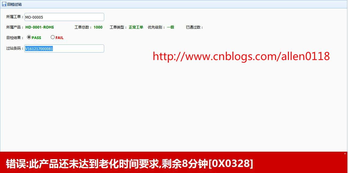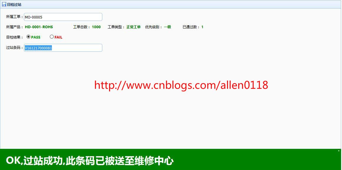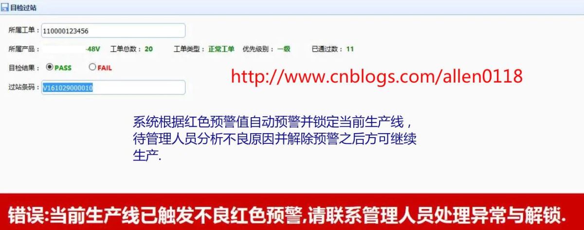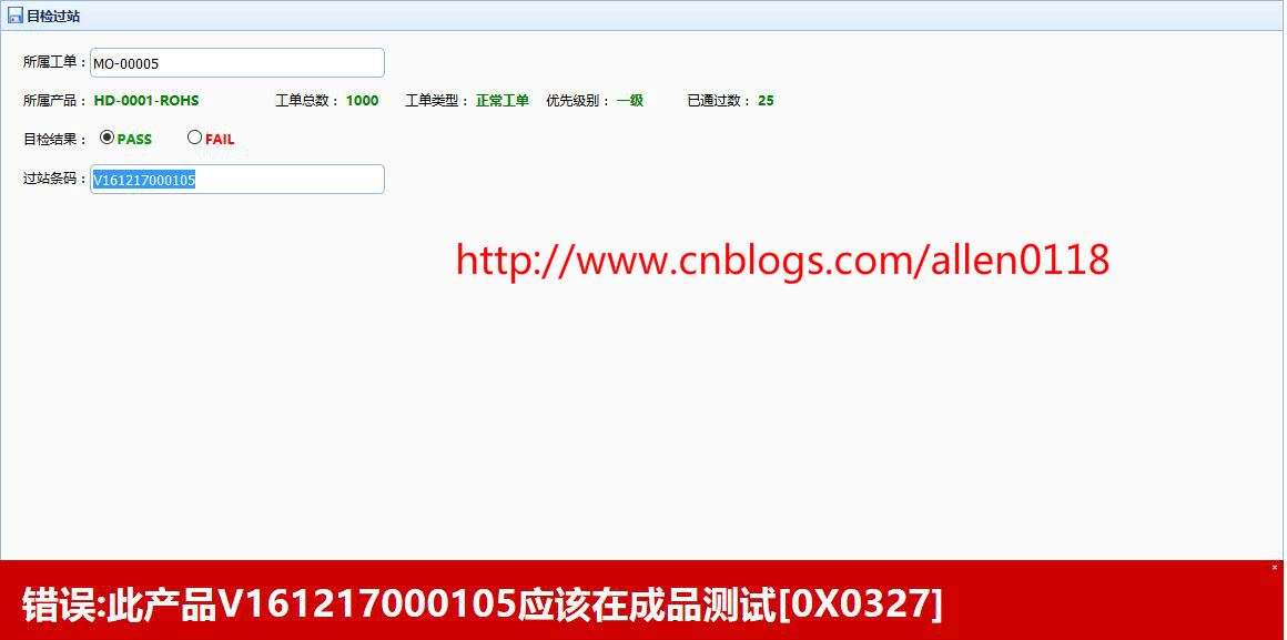 #4目检过站:操作扫描条码过站,必须按照 IE 制定的工艺路线进行,如果扫描的条码不在当前工序,则系统会提示当前条码的正确位置。