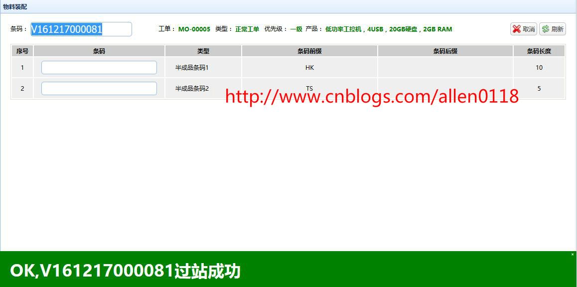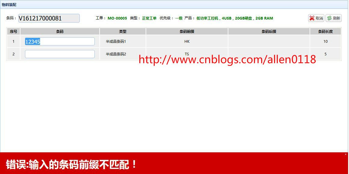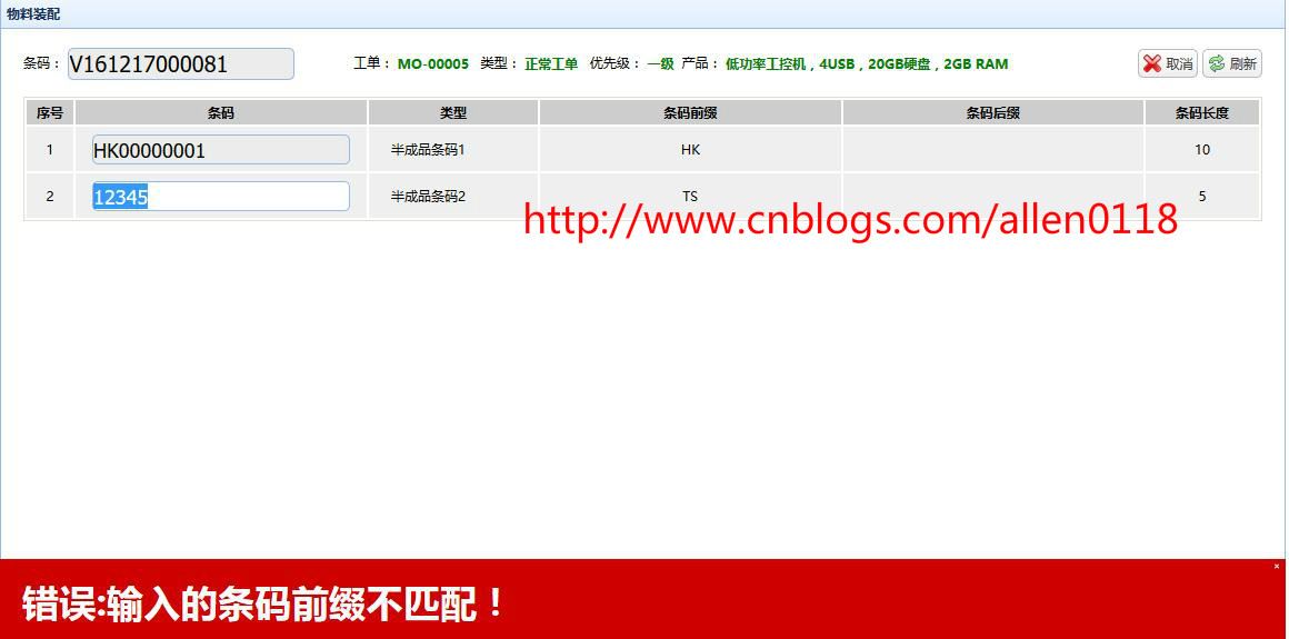 #6组装动态装配:系统支持动态配置装配规则,不同的工单采用不同的规则进行装配,每一个装配条码可独立配置条码规则,比如长度、前缀等信息,防止用户输入错误。