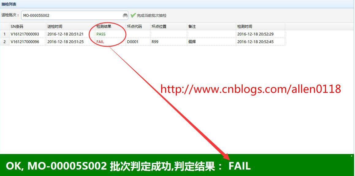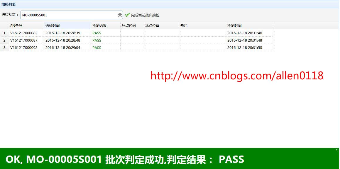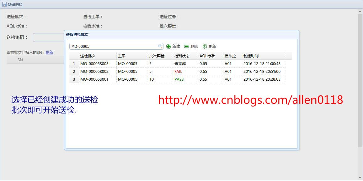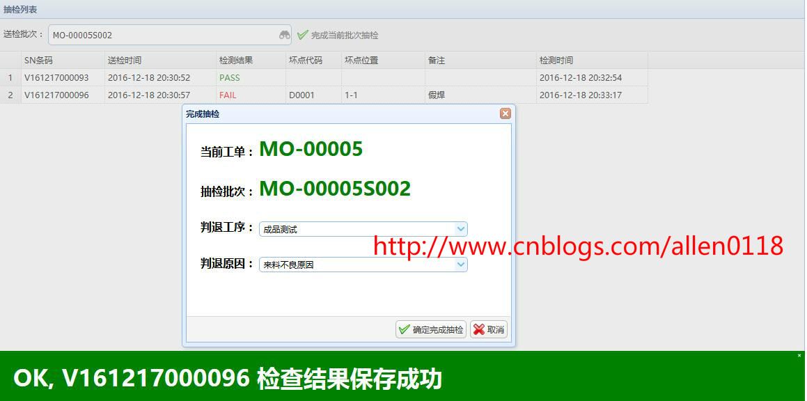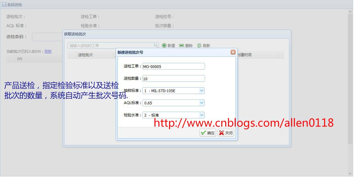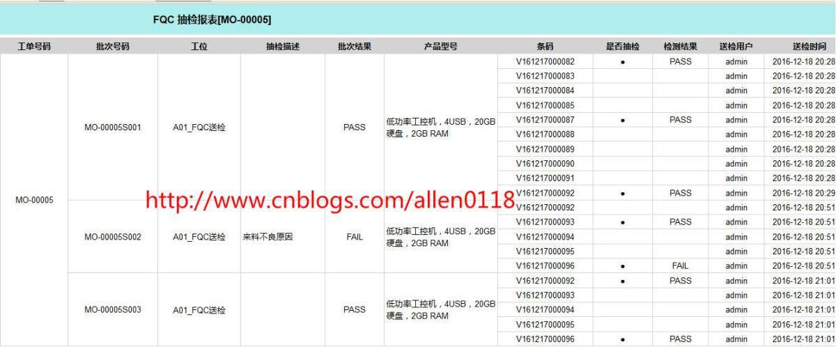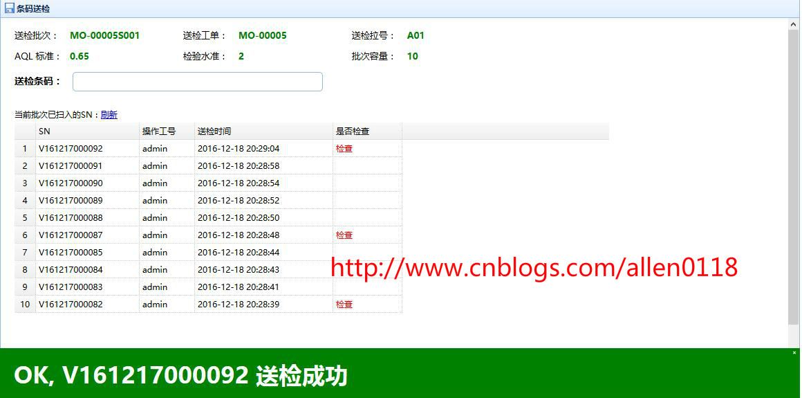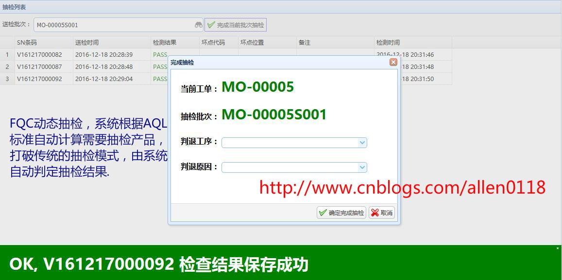 #8FQC抽检:生产方面将产品以批次单位送检至QC,系统提示QC需要抽检的产品序列号,QC针对需要抽检的产品检测并录入抽检结果,系统根据抽检情况按照 AQL 自动判定.