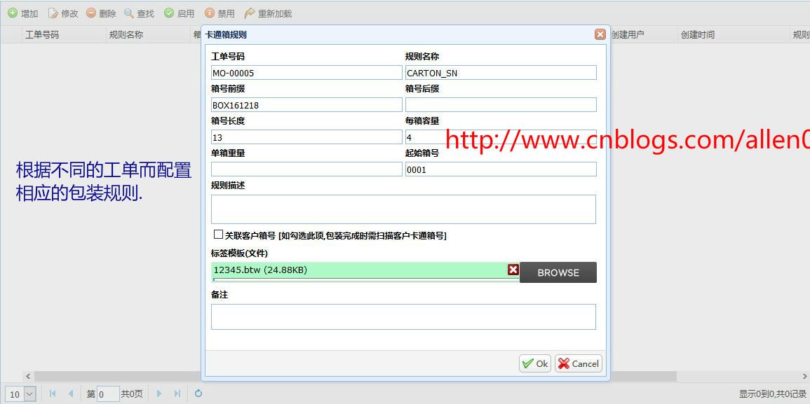 #9包装规则:针对每个工单配置相应的包装规则,比如卡通箱容量、箱号长度、箱号前缀等信息,并上传卡通标签模板。