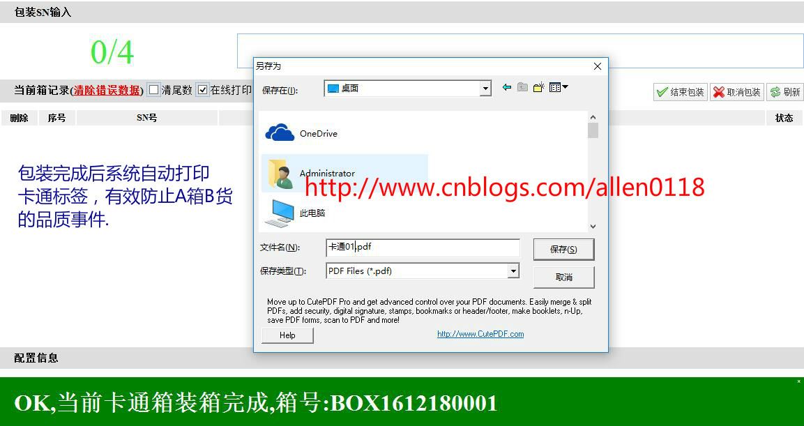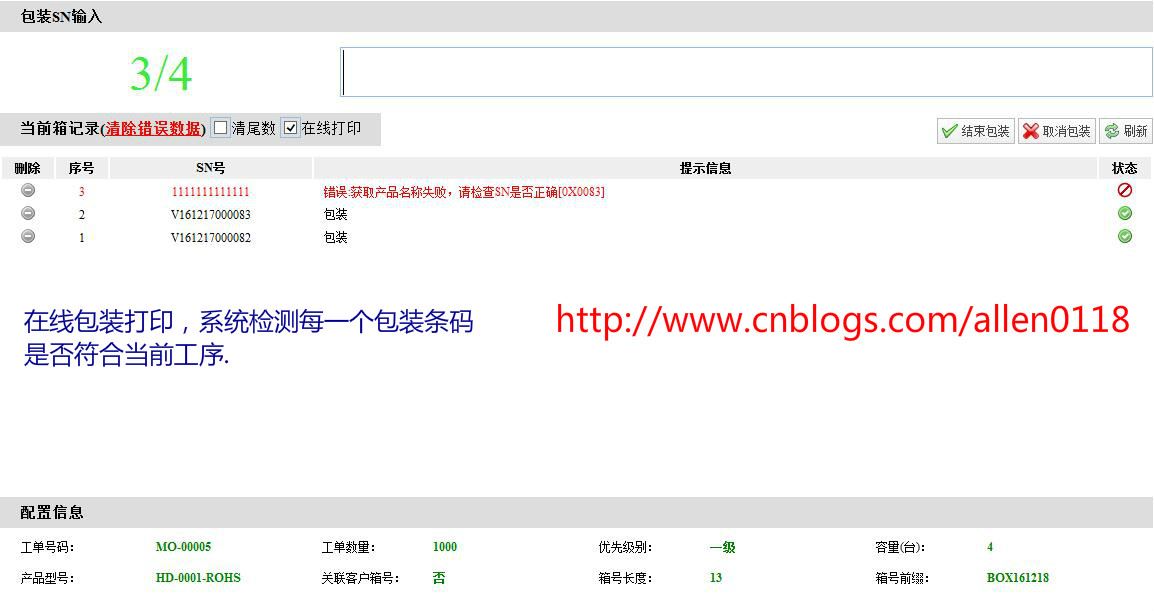 这样一来,操作员手上没有多的条码,必须包装完成之后系统才会一对一的打印一份条码出来,完成一个产品的包装就贴一个条码,很大程度上面避免了条码混乱的问题.