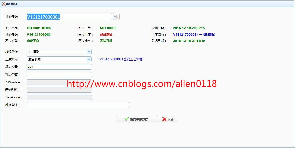#11不良品维修:生产过程中的不良都会被系统强制打入维修中心,必须经过修理之后才能进行其它工序。