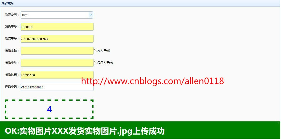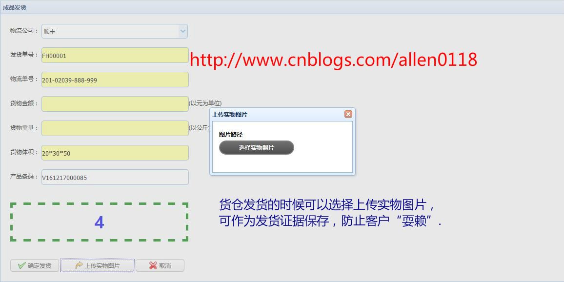 #13成品发货:成品发货过程中支持上传实物图片。