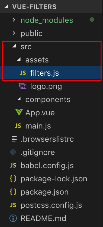 首先新建一个filters.js文件。把这个文件放在 src/assets 里。