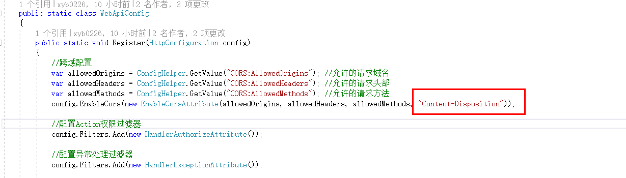采用web api 构建后端接口服务的同学,都知道,接口要解决跨域问题,都需要进行api的 CORS配置, 这里主要是针对于前端axios的响应response header中获取不到 content-disposition属性,进行以下配置