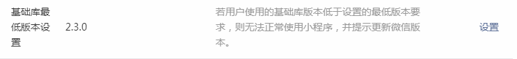 打开小程序管理后台-设置-基础库最低版本设置,根据现有小程序的访问情况或者小程序官方提供的数据,设置一个比较大众化的基础库版本就好了,这样就能进了尽量减少API兼容性判断,也能促使用户更新微信版本,以支持小程序正常运行,体验小程序一些高级功能。