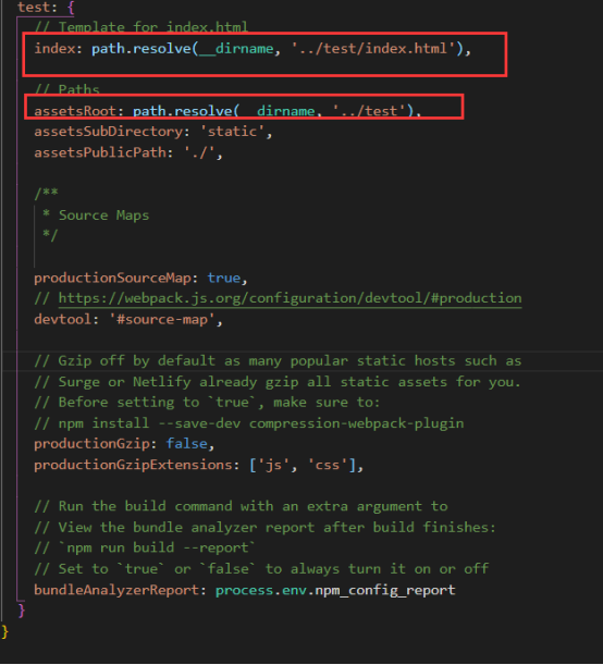 Step7、在config文件下的index增加test模块(可复制build)并更改相应的参数。