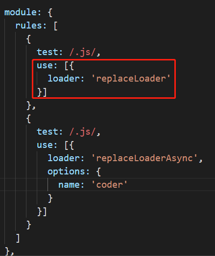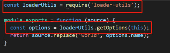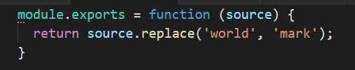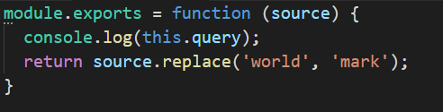 replaceLoader.js需要导出一个函数,注意:这个函数不能是箭头函数,因为webpack调用loader的时候会对this做一些变更,上面有一些方法,如果使用箭头函数,this指向就会有问题,没有办法调用this上的一些方法。
