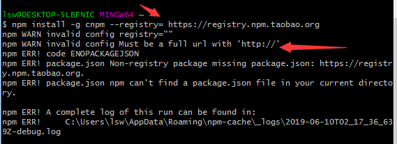 ②:vue安装淘宝镜像时报错,提示无效的配置,必须是完整合法的http地址,原因是我在url前面加了1个空格,这里不要有空格