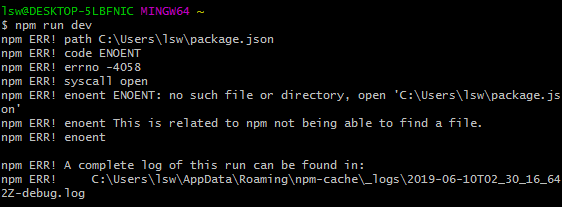 ③:若直接使用 npm run dev 命令运行会报错,提示没有这样的文件或目录,需要先创建一个项目