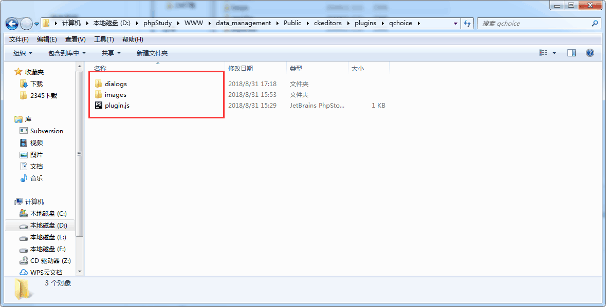 好啦,到这里,自定义插件就算是放入成功了。咱们自定义的插件主要的逻辑结构就是在qchoice.js文件中,可以改变它的内容,来实现不同的功能。