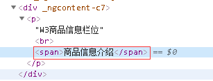 this.contents= this.sanitizer.bypassSecurityTrustHtml("<p>W3商品信息栏位<br><span style="color:red;">商品信息介绍</span></p>");