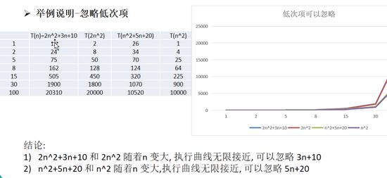 2、T(n) 不同,但时间复杂度可能相同。 如:T(n)=n²+7n+6 与 T(n)=3n²+2n+2 它们的T(n) 不同,但时间复杂度相同,都为O(n²)。
