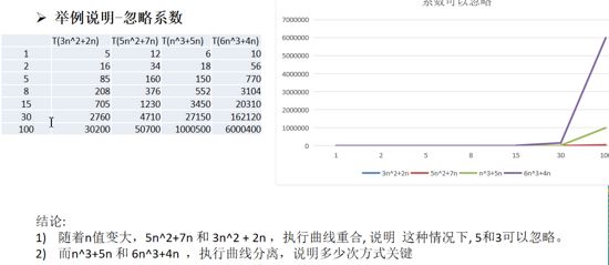 时间频度:一个算法花费的时间与算法中语句的执行次数成正比例,哪个算法中语句执行次数多,它花费时间就多。一个算法中的语句执行次数称为语句频度或时间频度。记为T(n)。