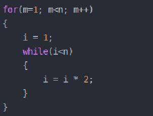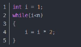 说明:在while循环里面,每次都将 i 乘以 2,乘完之后,i 距离 n 就越来越近了。假设循环x次之后,i 就大于 2 了,此时这个循环就退出了,也就是说 2 的 x 次方等于 n,那么 x = log 2 n也就是说当循环 log 2 n 次以后,这个代码就结束了。因此这个代码的时间复杂度为:O(log 2 n) 。 O(log 2 n) 的这个2 时间上是根据代码变化的,i = i * 3 ,则是 O(log 3 n) .