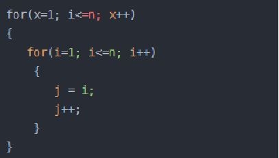 说明:这段代码,for循环里面的代码会执行n遍,因此它消耗的时间是随着n的变化而变化的,因此这类代码都可以用O(n)来表示它的时间复杂度