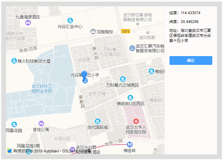 6. 点击确定按钮,返回最后的坐标点和地名给父组件