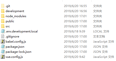 模仿vue中.env.local文件,此文件被git忽略,且可根据当前环境变量加载不同的数据,由此在项目根目录下新建development文件夹,在development文件加下建立config文件夹,用户放置配置文件,config下目前暂有两个文件 config.development.local config.owndev.local