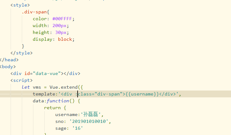 第四步,为了显示变量的字体等样式,需要添加相关的样式属性,这里使用:class,如下图所示: