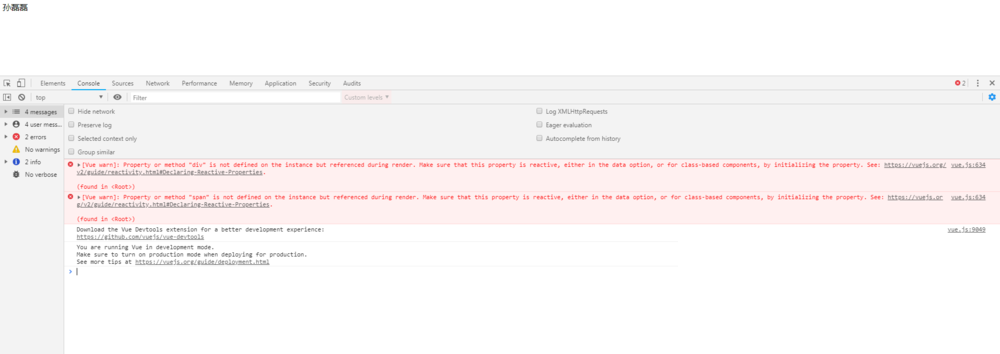 第五步,保存代码并打开浏览器预览界面效果,可是控制台出现了错误警告,如下图所示: