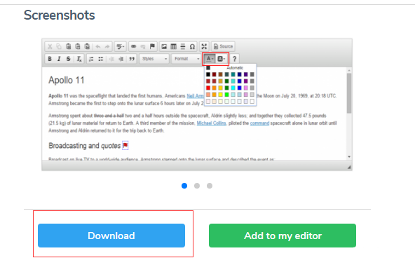 点击color button 来到https://ckeditor.com/cke4/addon/colorbutton页面,会跳出下面这个东西,滑到下面download它