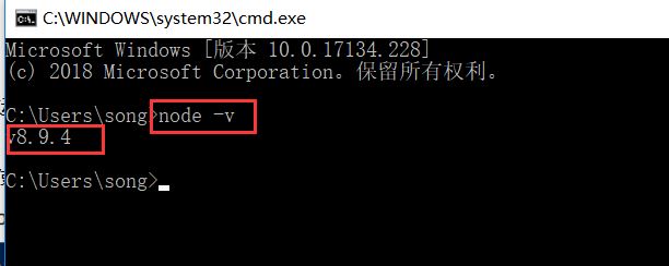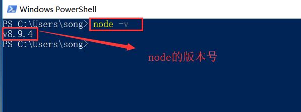 3、安装完成后可以使用cmd(win+r然后输入cmd进入 )测试下是否安装成功。方法:在cmd下输入node -v,出现下图版本提示就是完成了NodeJS的安装。