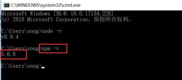 4、npm的安装。由于新版的NodeJS已经集成了npm,所以之前npm也一并安装好了。同样可以使用cmd命令行输入”npm -v”来测试是否成功安装。如下图,出现版本提示便OK了。
