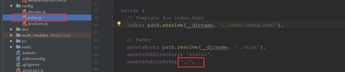 注意: 生成的时候一定要修改index.js 中的生成路径,否则后面程序运行打包页面会显示空白,找不到路径
