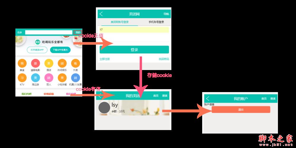 cookie.js为公共方法,用于cookie的存储、获取及删除