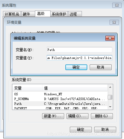 3.将phantomjs配置为系统变量,下面是Windows配置为环境变量: