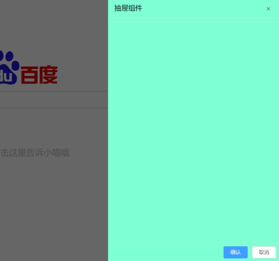 //引入的页面 <Drawer :width="400" direction="right" :mask="true" title="抽屉组件" :footer-ok="footerOk" :footer-cal="footerCal" > </Drawer>