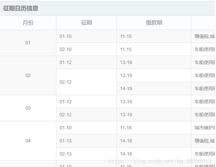 <th class="" colspan="12">征期日历信息</th>
