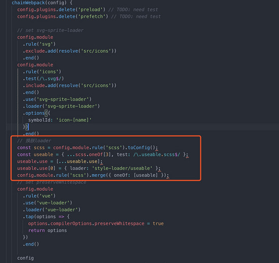 在配置文件中chainWebpack链式修改webpack配置就能成功应用loader了,话不多说,直接上代码,